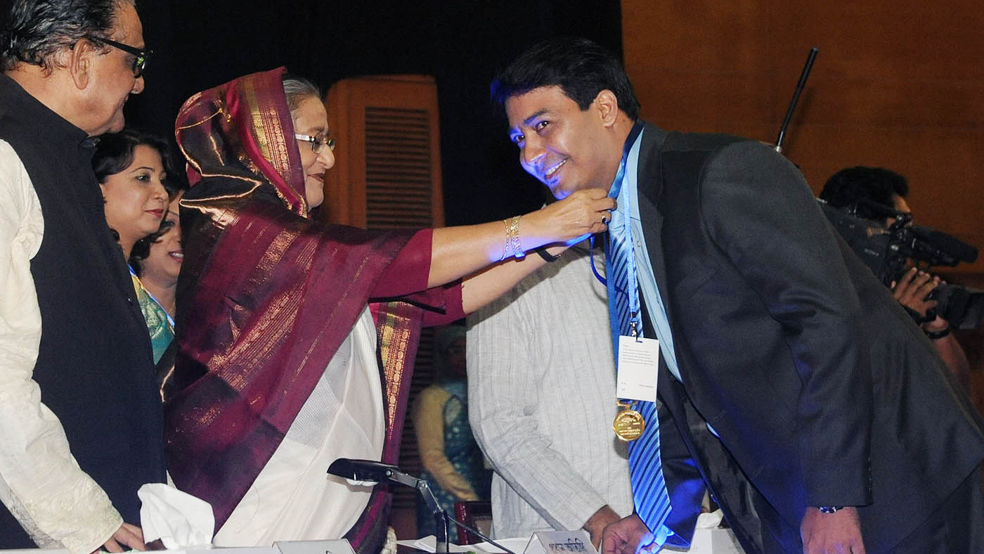 receiving“National Gold Medal as Fisheries Enterpreneur” from Sheikh Hasina Honorable