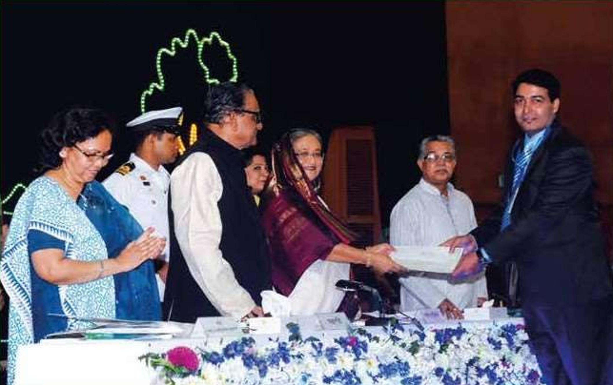 receiving “Certificate” from the Honorable Prime Minister Sheikh Hasina, Govt. of the Peoples